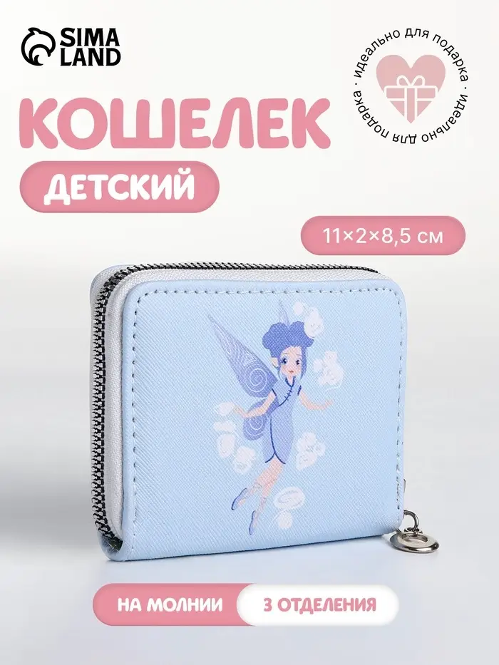 Этот голубой кошелёк с молнией станет первым по-настоящему взрослым аксессуаром для маленькой леди. Он создан, чтобы бережно хранить не только первые монетки и купюры, но и важные детские карточки. Яркий рисунок с волшебной феей делает его идеальным подарком, который будет радовать каждый день.