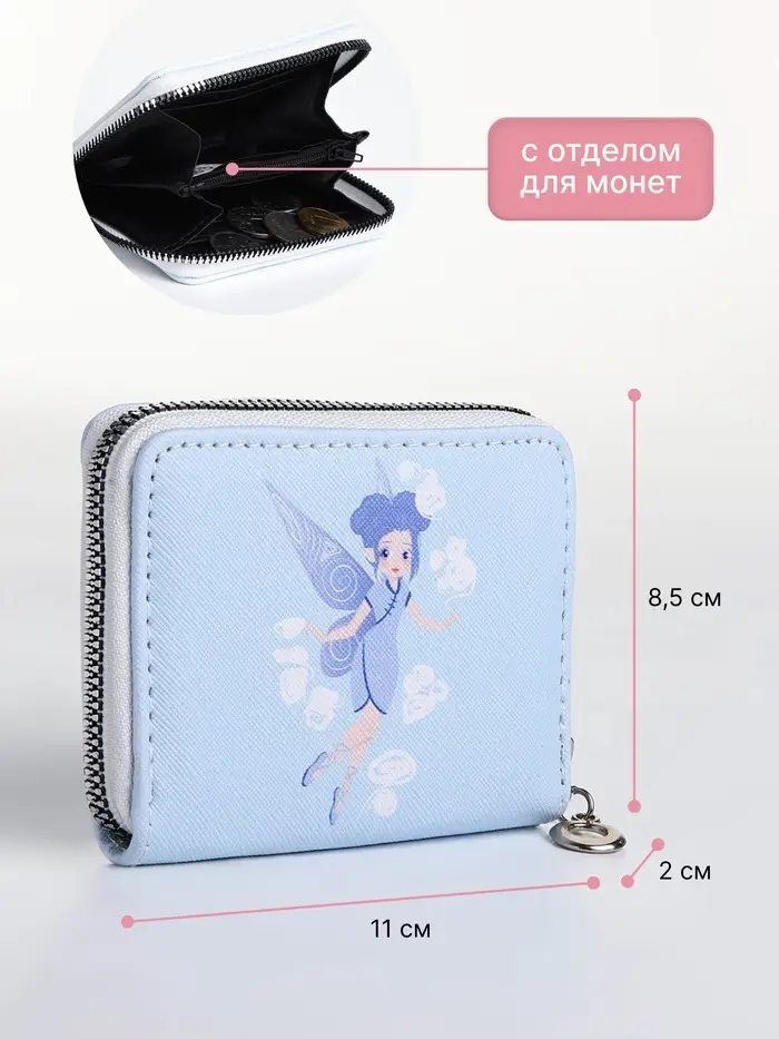 Кошелёк на молнии «Фея воздуха», отдел для карт, для монет, голубой