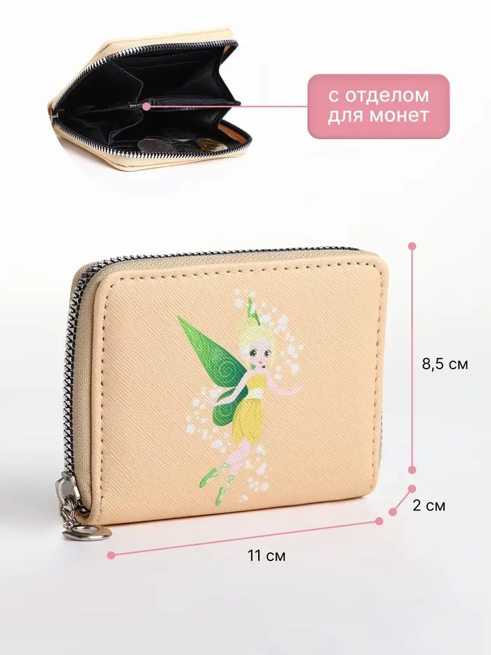 Кошелёк на молнии «Фея земли», отдел для карт, для монет, бежевый