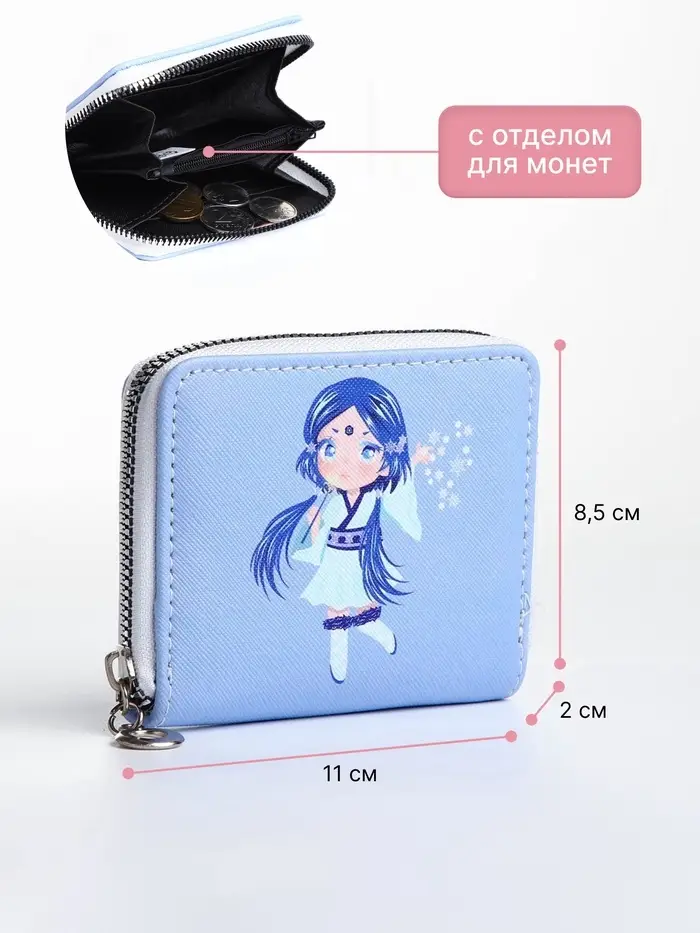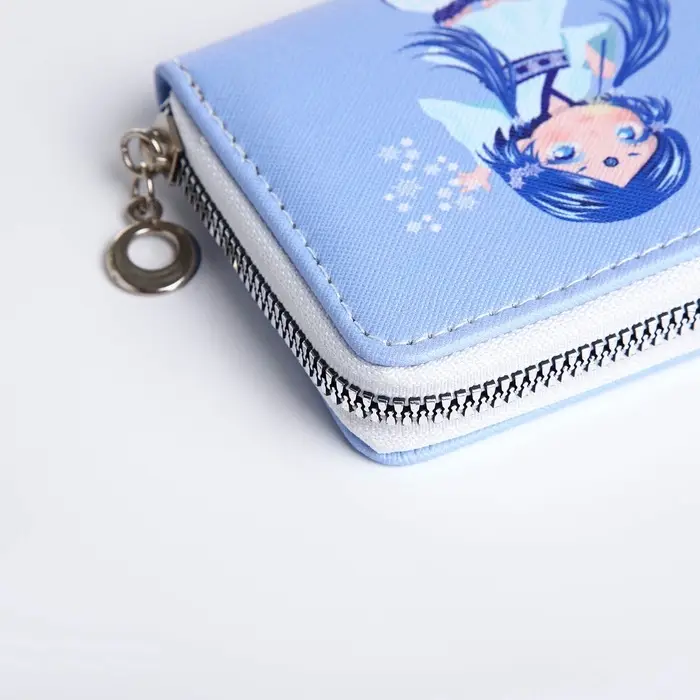 Этот голубой кошелёк с молнией станет первым по-настоящему взрослым аксессуаром для маленькой леди. В нём есть специальное место для всего важного: карточек, купюр и даже для сбережений в отделении на молнии. Нежный рисунок с зимней феей делает кошелёк не просто практичной вещью, а маленьким сокровищем, которое хочется беречь.