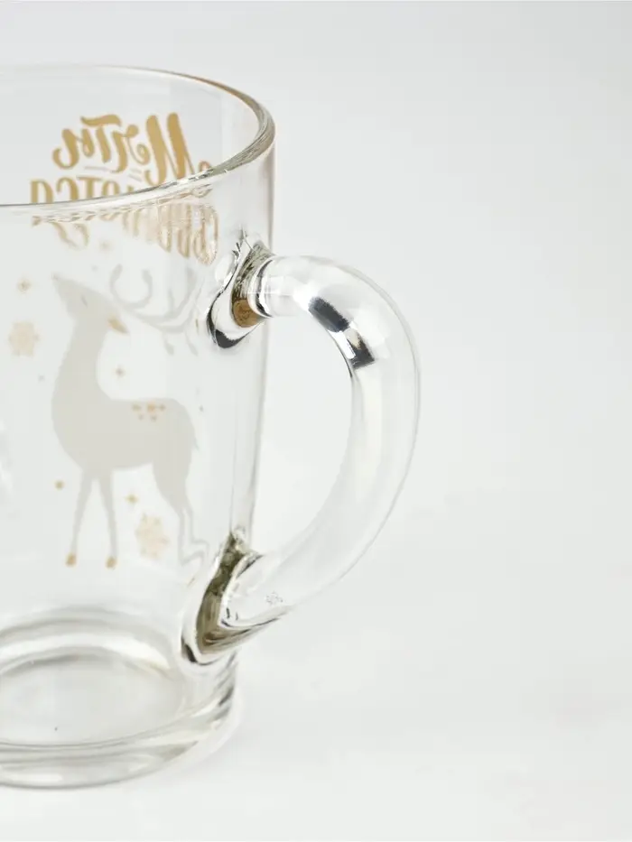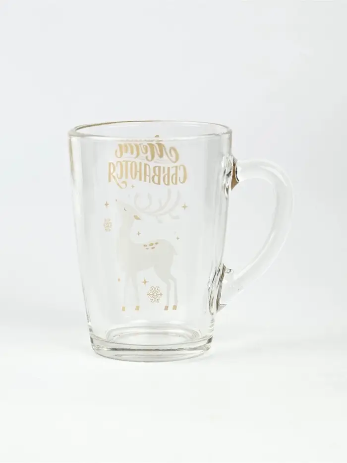 Стеклянная новогодняя кружка объёмом 300 мл — это стильный и практичный аксессуар для вашей кухни или офиса.