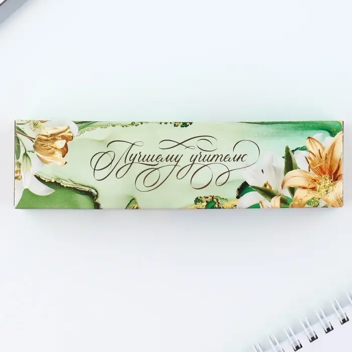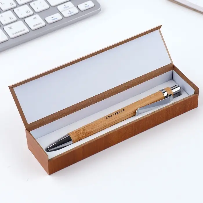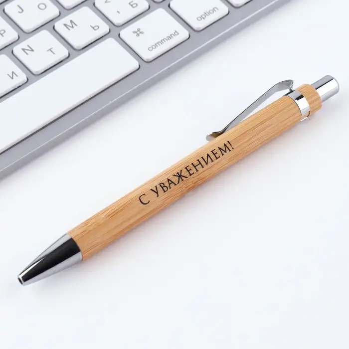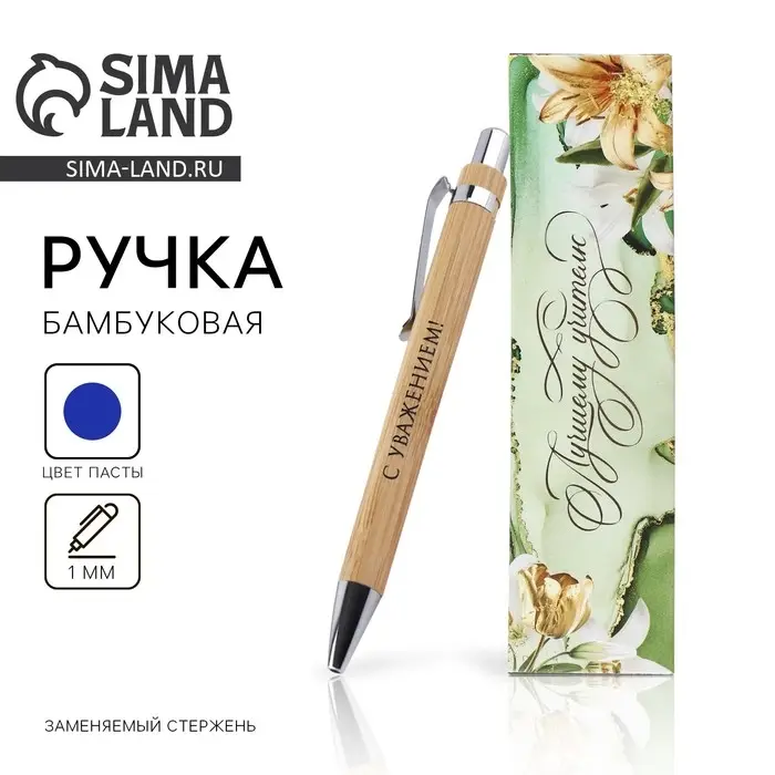 Ручка шариковая, синяя паста, автоматическая, 1 мм, бамбук, в футляре «Лучшему учителю»