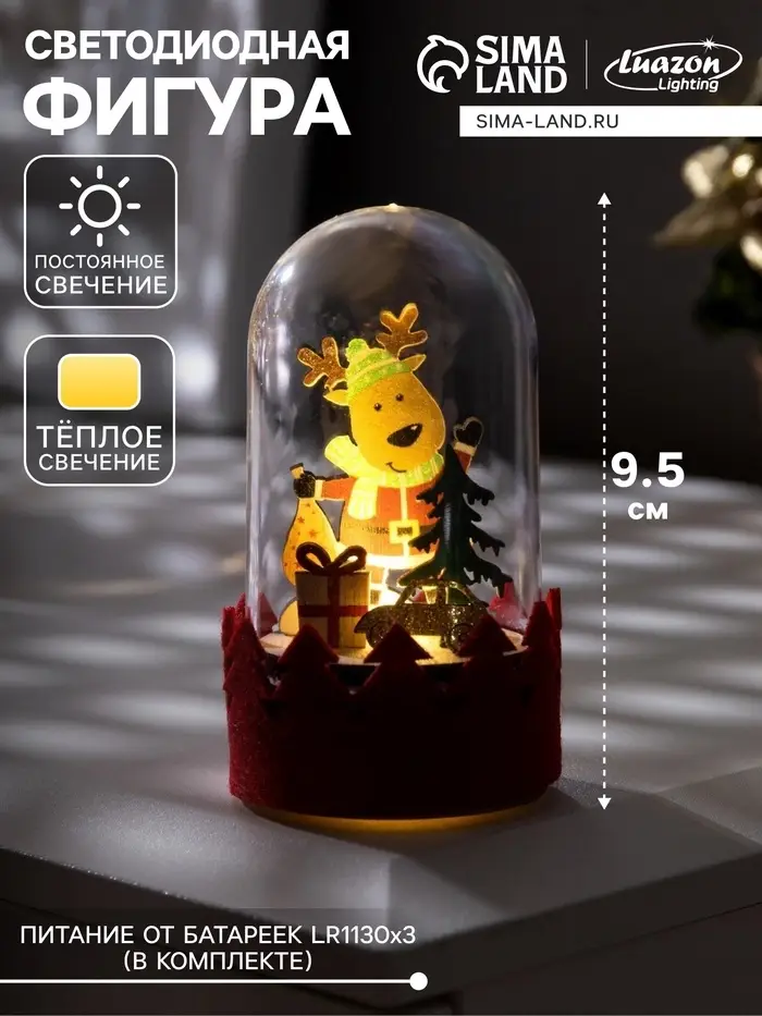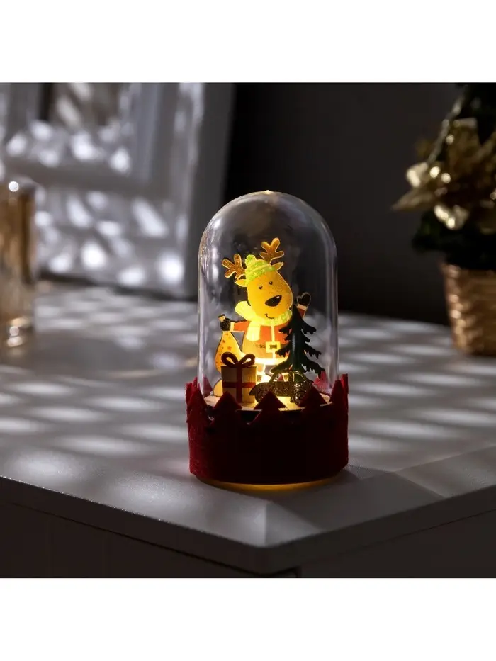 Светодиодная фигура под куполом «Оленёнок» 6×9.5×6 см, дерево, от батареек LR1130×3, свечение тёплое белое