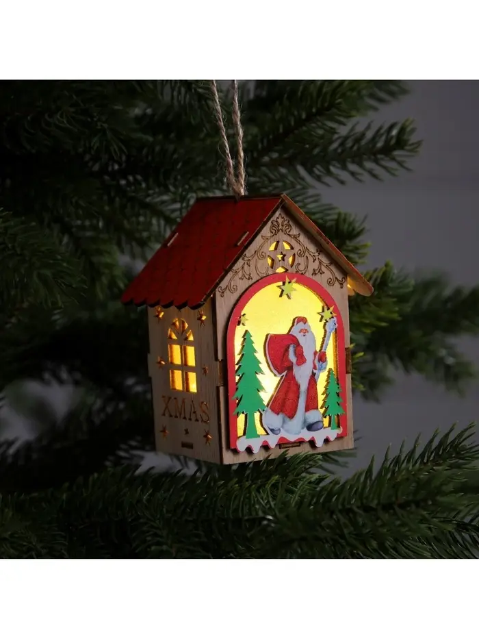Подвеска световая «Дом Деда Мороза», 7×6×8 см, 1 LED, от батареек AG10×3, свечение тёплое белое