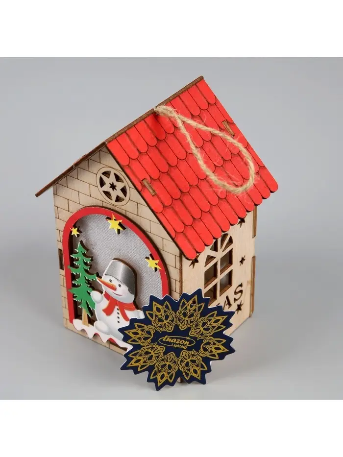 Изготовленный из дерева, домик освещает пространство тёплым белым сиянием, создавая уютную и праздничную атмосферу. Благодаря встроенному светодиоду, работающему от батареек, игрушка может быть размещена в любом месте, будь то ветки ёлки или полки в вашем доме. Его размеры 14.5х11х8.5 см делают его удобным для размещения и достаточно заметным.