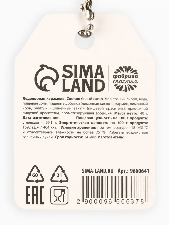 Масса нетто: 40 г, дата изготовления: 06.2024, пищевая ценность (на 100 г): углеводы — 99,1 г, энергетическая ценность (на 100 г): 1692 кДж / 404 ккал.