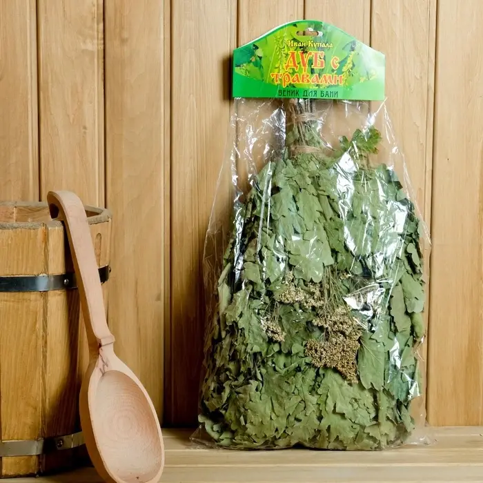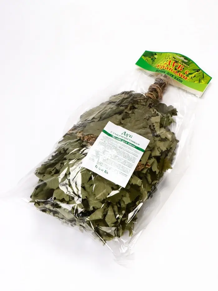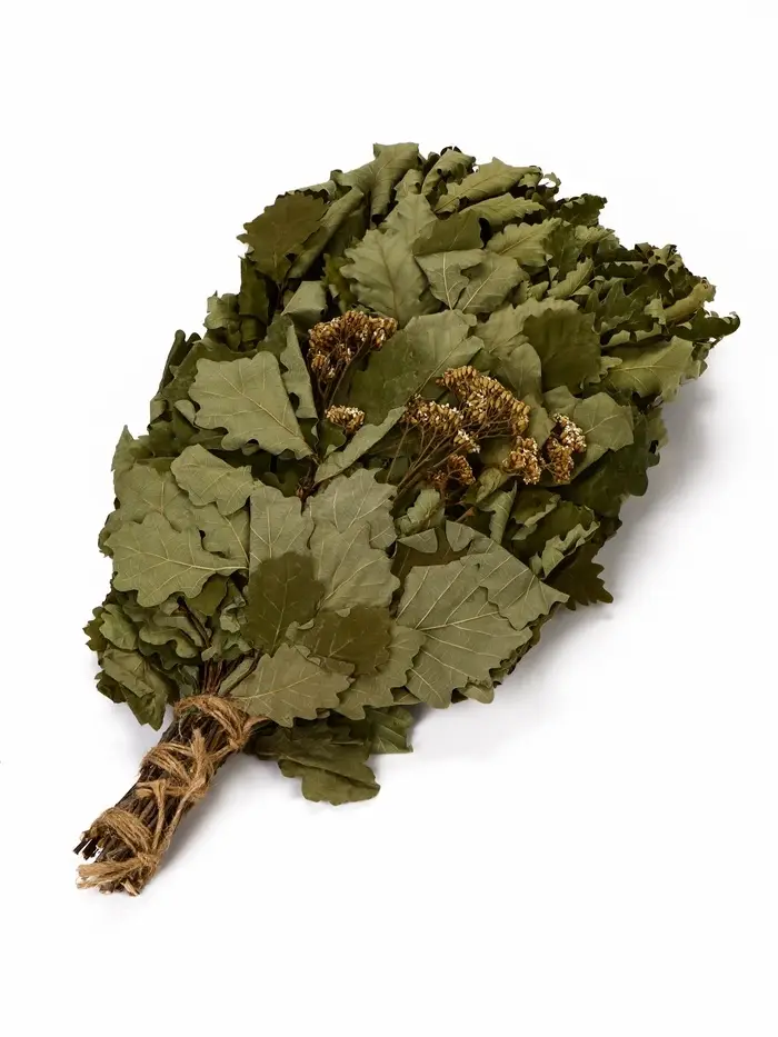 Веник для бани дубовый, с тысячелистником