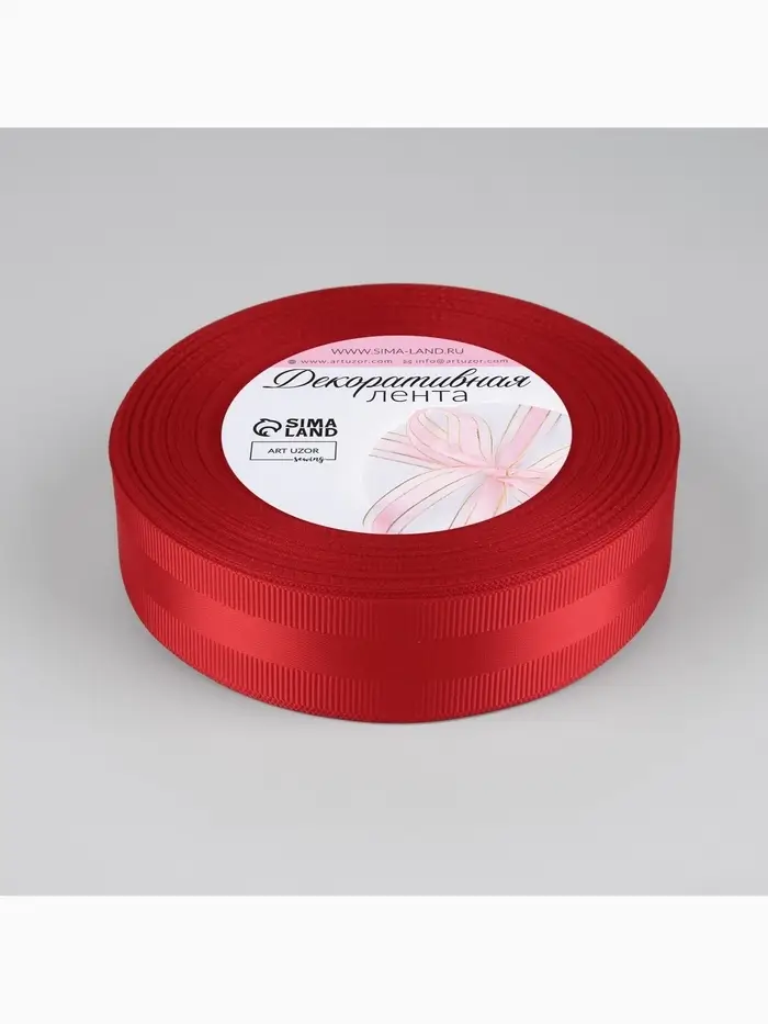 Лента декоративная, репсовая/атласная, 25 мм, 18 ± 1 м, цвет красный