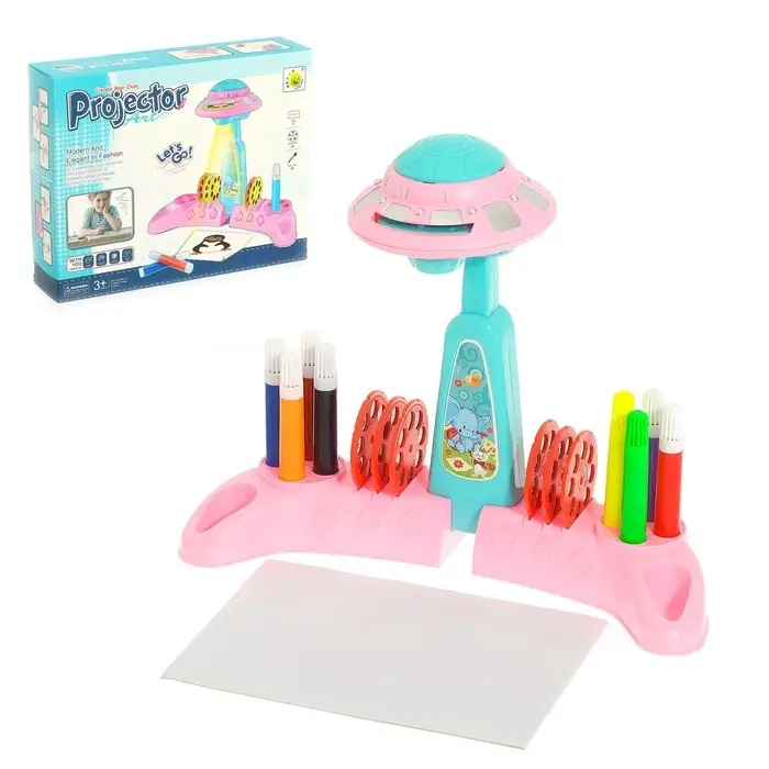 Проектор для рисования «Учимся рисовать» — увлекательный набор для творчества, который помогает ребёнку развивать воображение, внимание и мелкую моторику. Достаточно включить проектор, выбрать тему и обвести изображение на бумаге.
