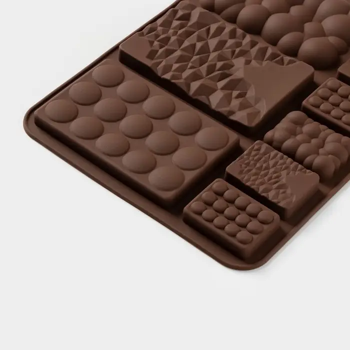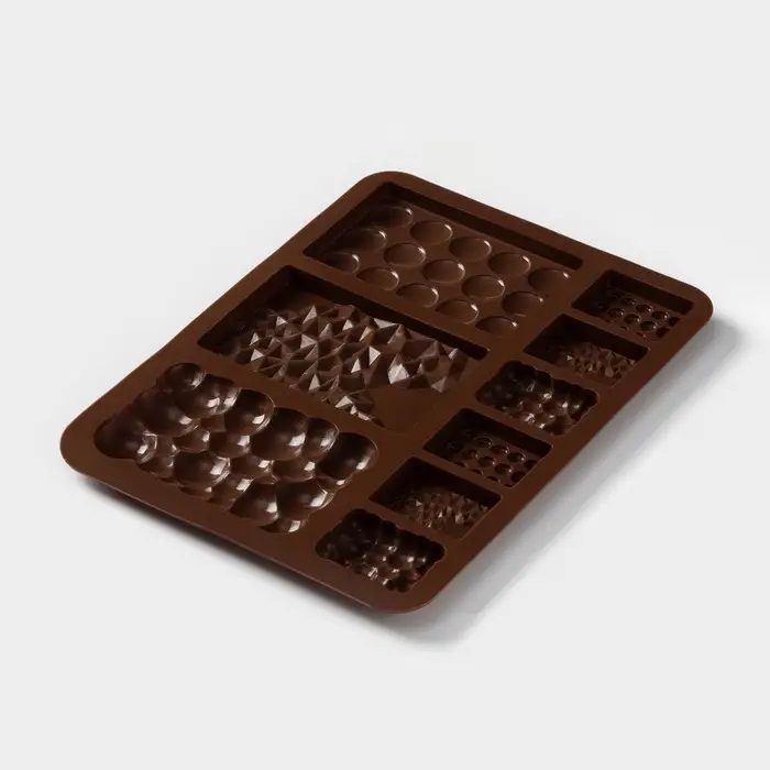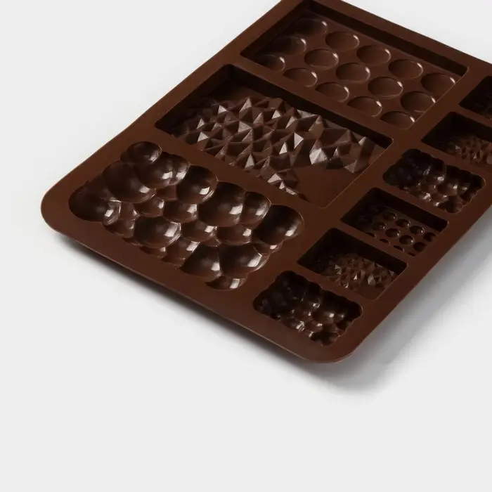 Форма для шоколада Доляна «Шоколадное ассорти», силикон, 20×14.8×0.7 см, 9 ячеек, коричневая