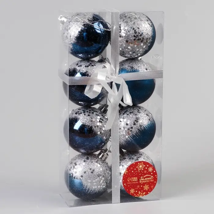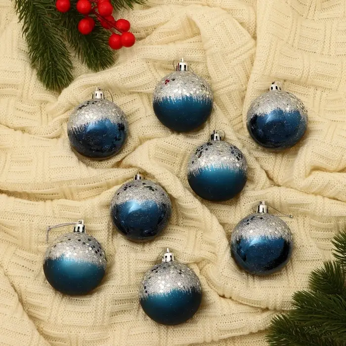 - Комплект из 8 шаров насыщенного синего цвета с изящным узорчатым рисунком.