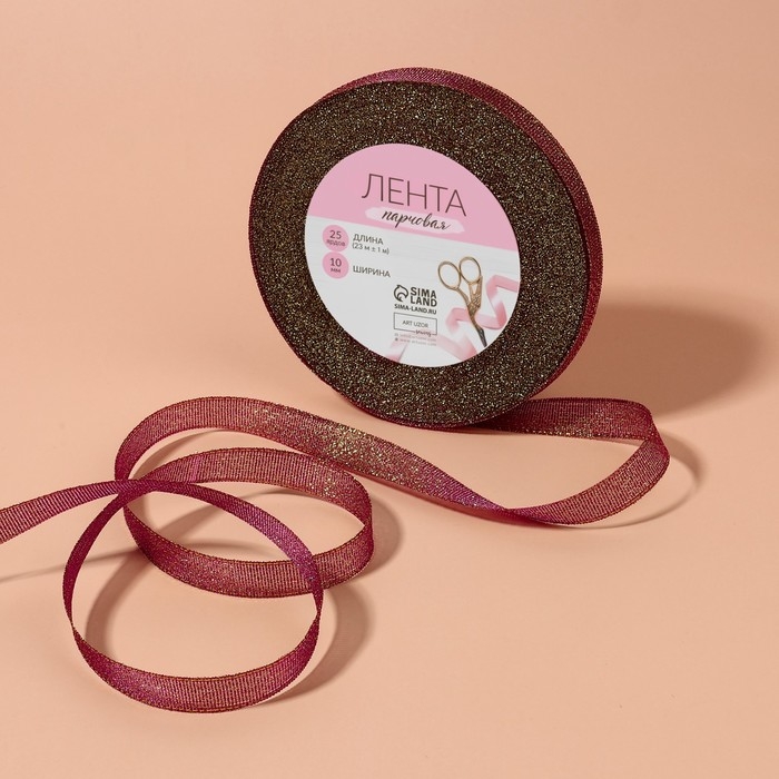 Лента парчовая, 10 мм, 23 ± 1 м, цвет сливовый №012