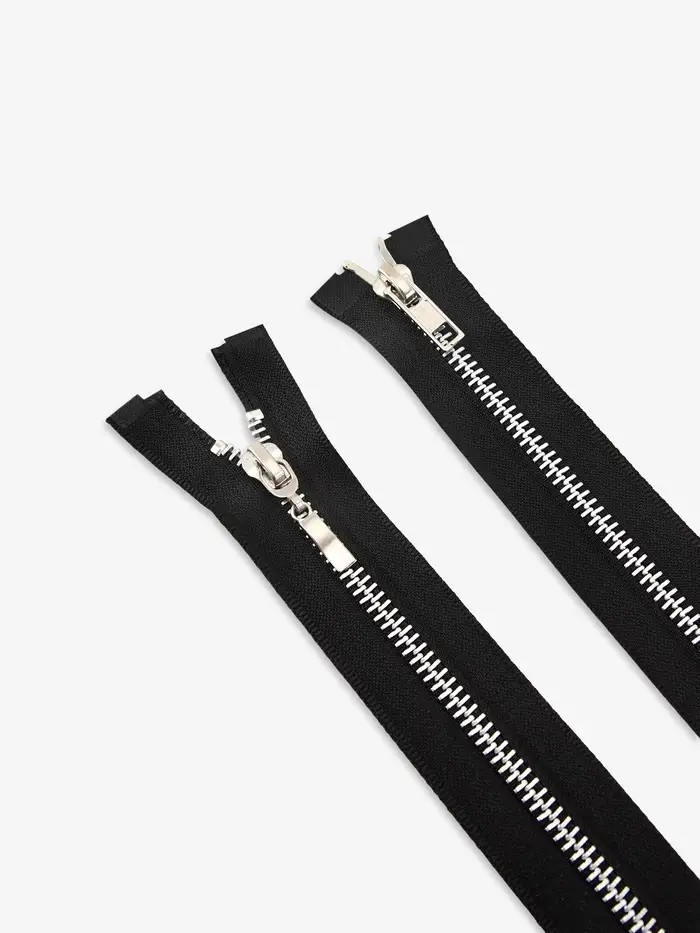 Металлические молнии подходят для вещей из плотного трикотажа, денима, тонкой кожи. Зубчики обработаны от ржавчины, текстильная лента прочная, не выцветает и не истирается.