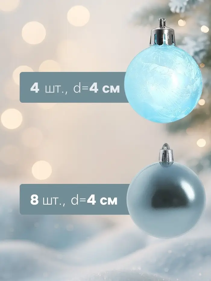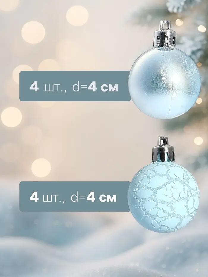 - Диаметр — 4 см, компактный размер для акцентного или плотного украшения ёлки.