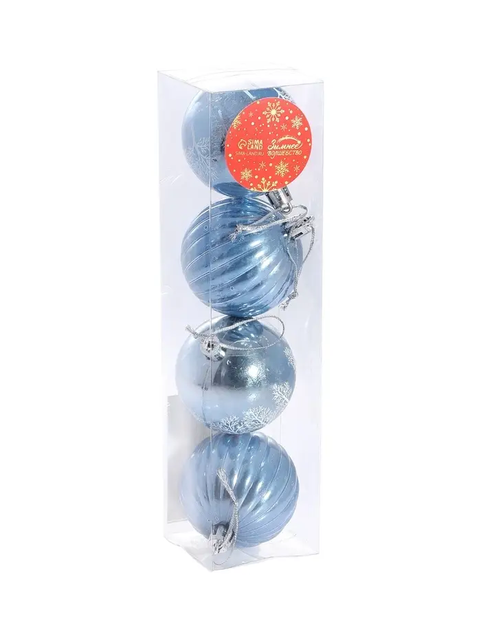 Ёлочные игрушки «Новогодние забавы», шары новогодние, d=5.5 см, набор 4 шт., полосы, голубой