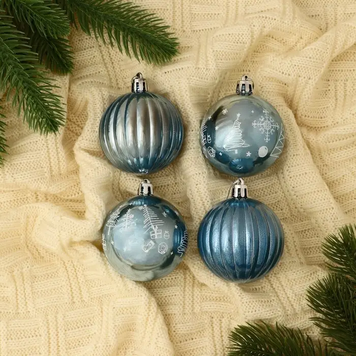Ёлочные игрушки «Новогодние забавы», шары новогодние, d=5.5 см, набор 4 шт., полосы, голубой