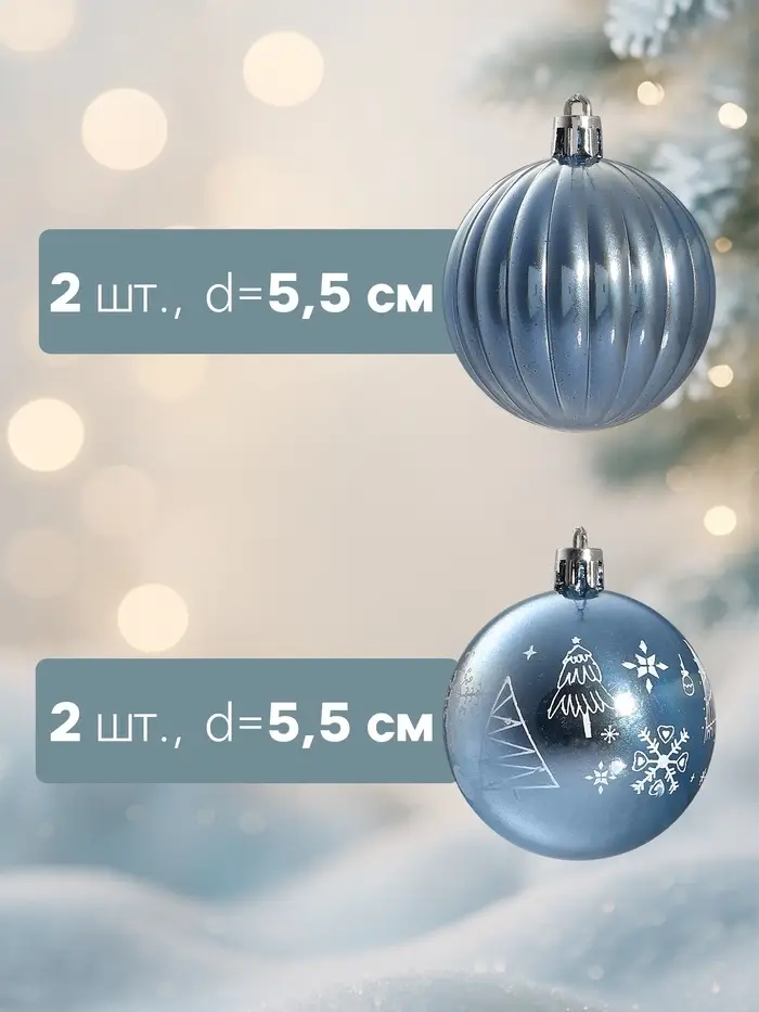 - Диаметр 5,5 см подходит для разнообразных вариантов украшения ёлки.