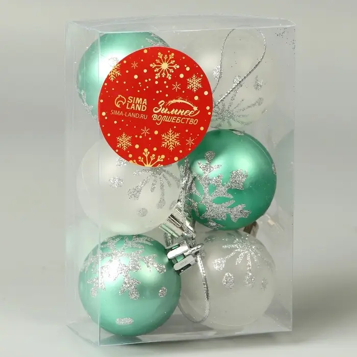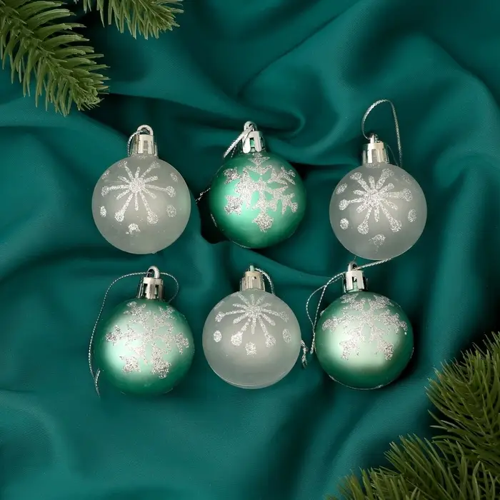 Ёлочные игрушки «Морозный день», шары новогодние, d=3.5 см, набор 6 шт., зелёный/белый
