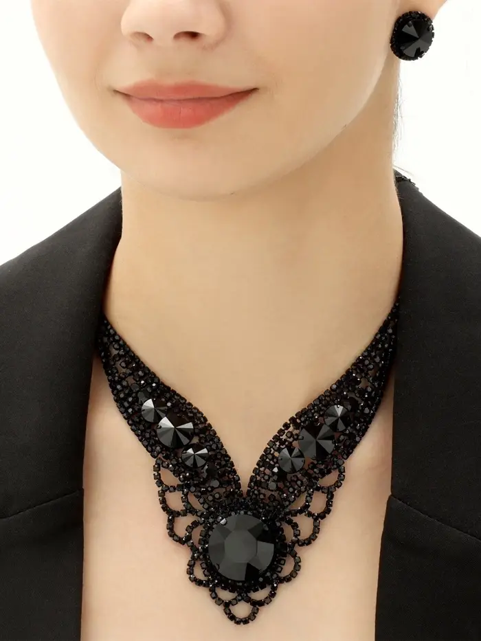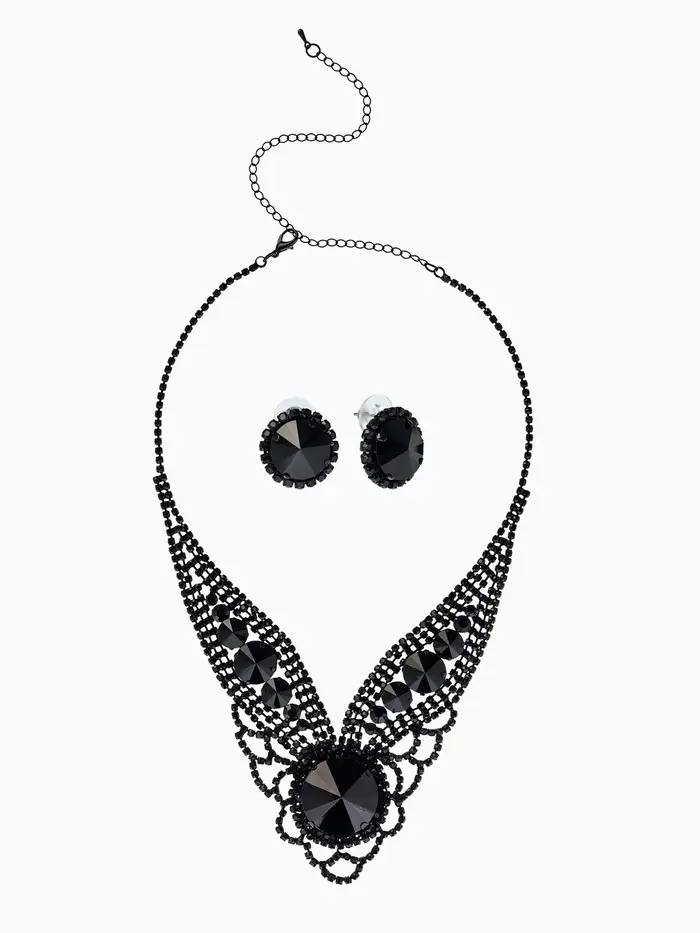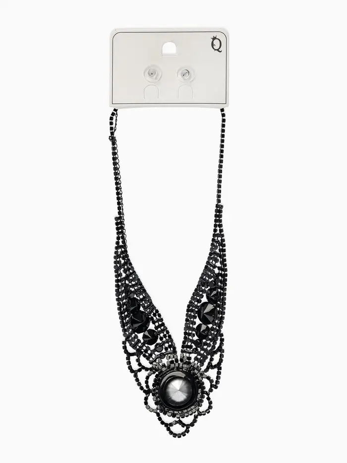 Набор 2 предмета: серьги, колье «Вернисаж», круг ажурный, чёрный, 35 см