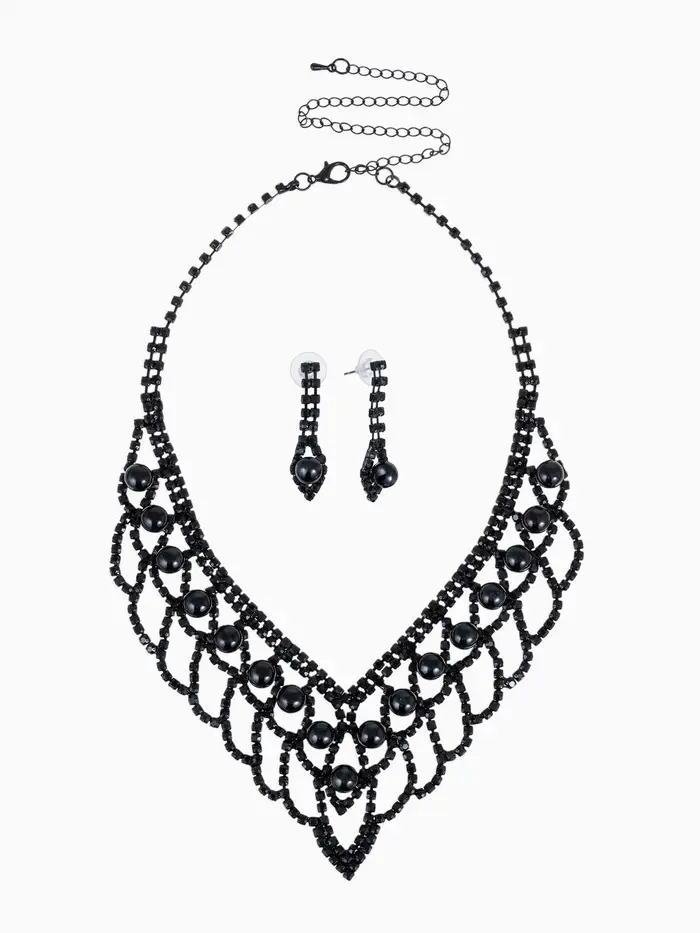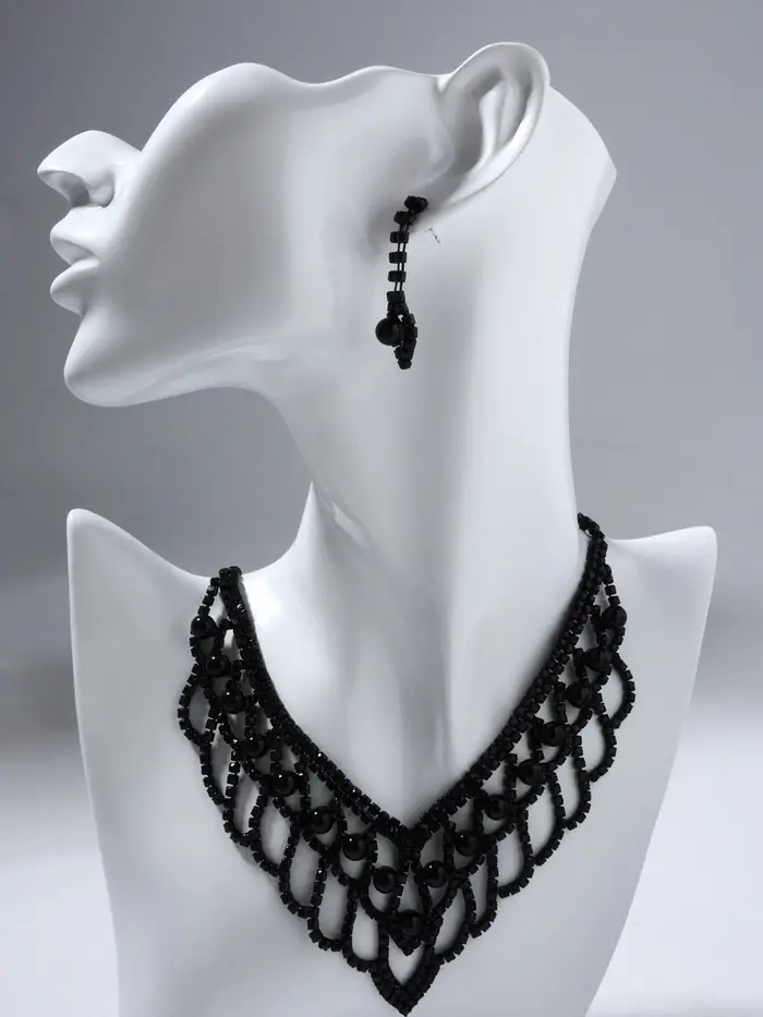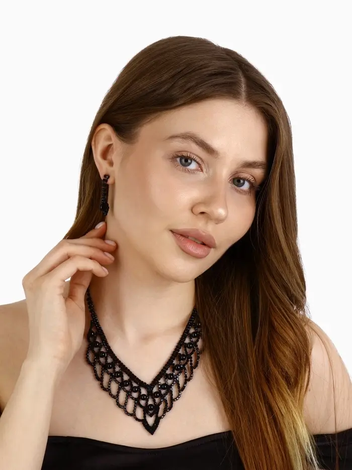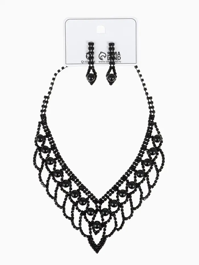 Набор 2 предмета: серьги, колье «Вернисаж», шарики, чёрный, 30 см