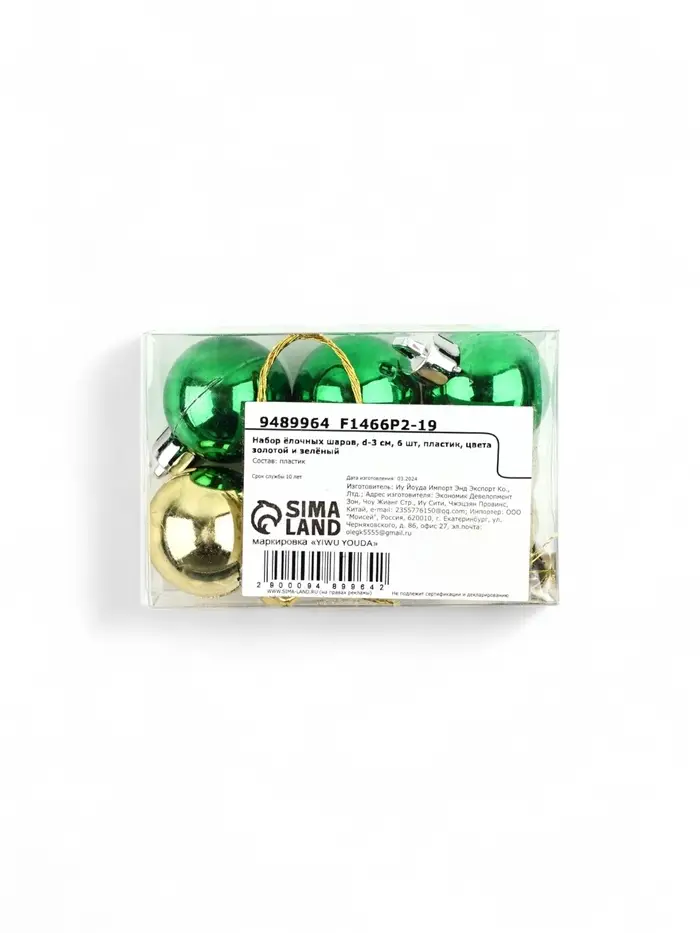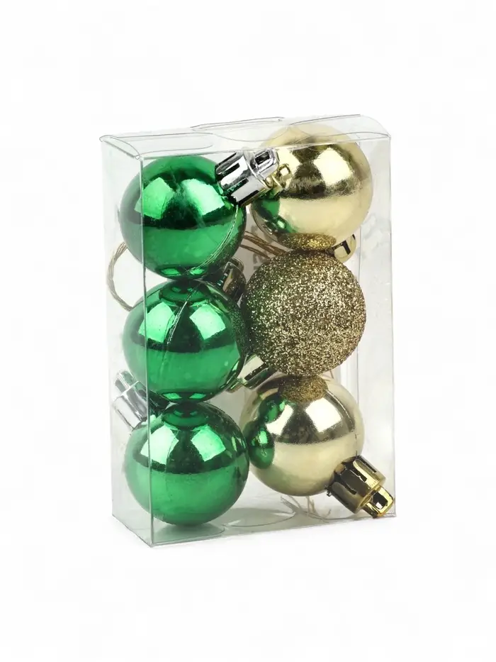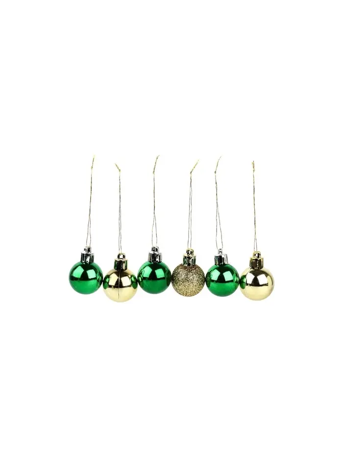 Шары ёлочные новогодние, пластик, d=3 см, 6 шт., золотые, зелёные