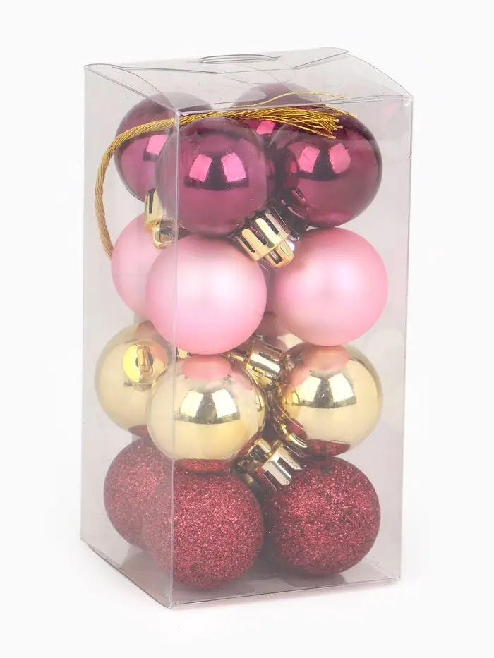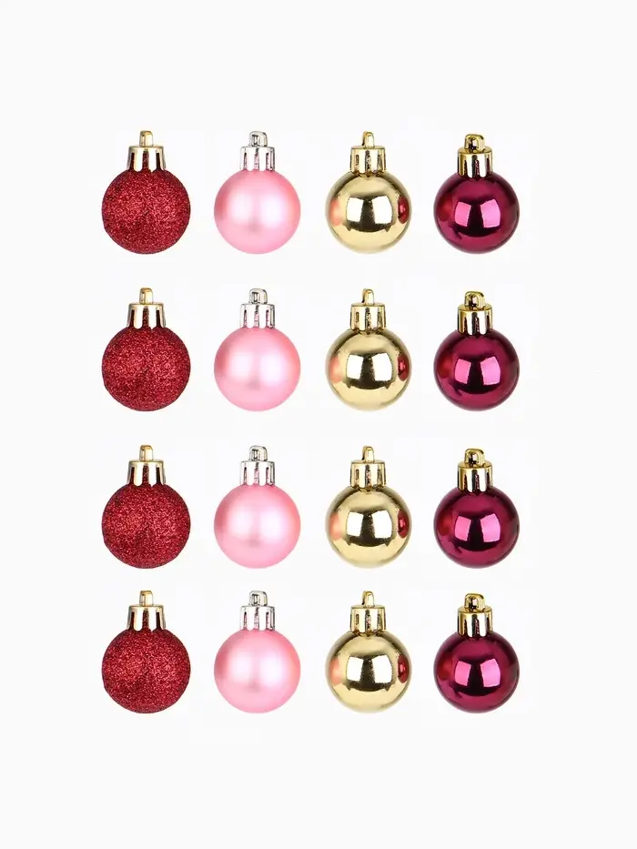 Шары ёлочные новогодние, пластик, d=3 см, набор 16 шт., винные, розовый и золотой