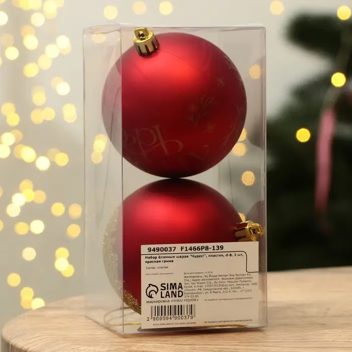 Шары ёлочные новогодние «Чудес!», пластик, d=8, 2 шт., красные