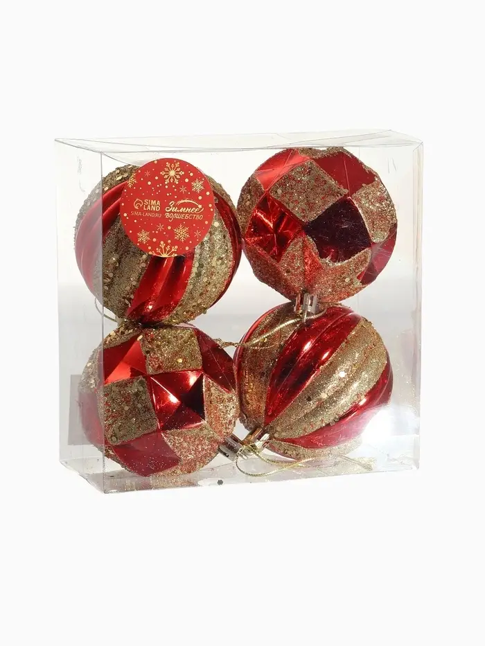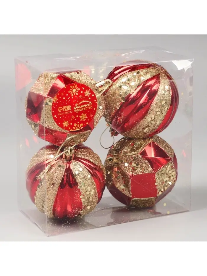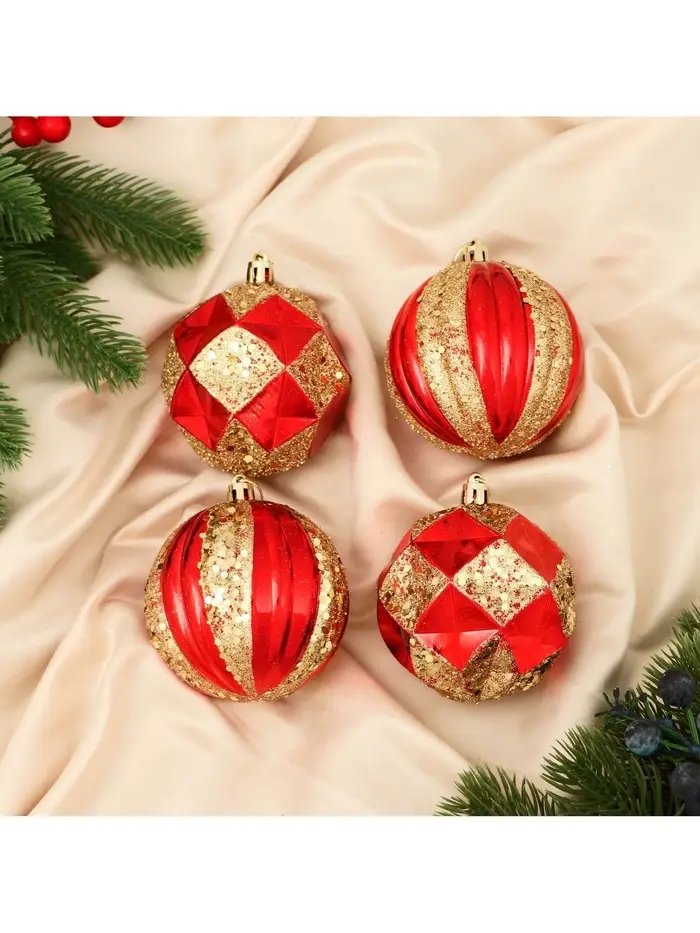 Ёлочные игрушки «Праздничный блеск», d=8 см, набор 4 шт., красно-золотой
