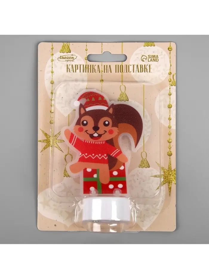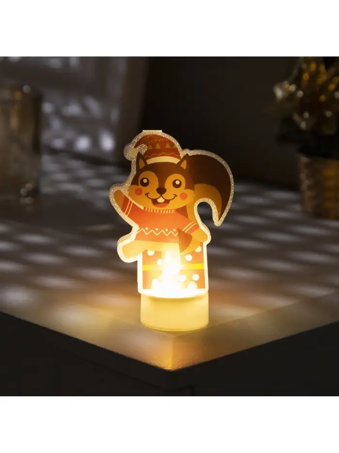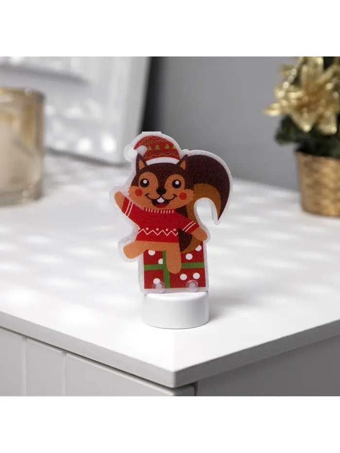 Световая картинка на подставке «Белочка», 11 см, 1 LED, от батареек, свечение тёплое белое