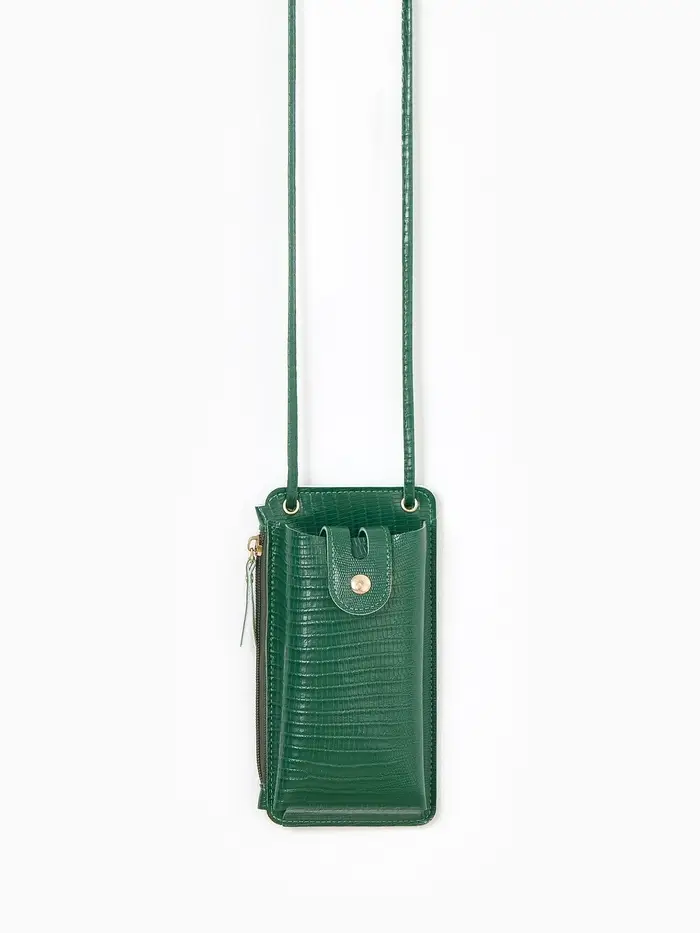 Сумка на магните, с длинным ремнём, однотонная, 10×2.5×20 см, зелёная
