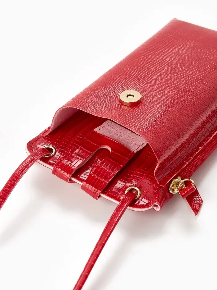Сумка на магните, с длинным ремнём, однотонная, 10×2.5×20 см, красная