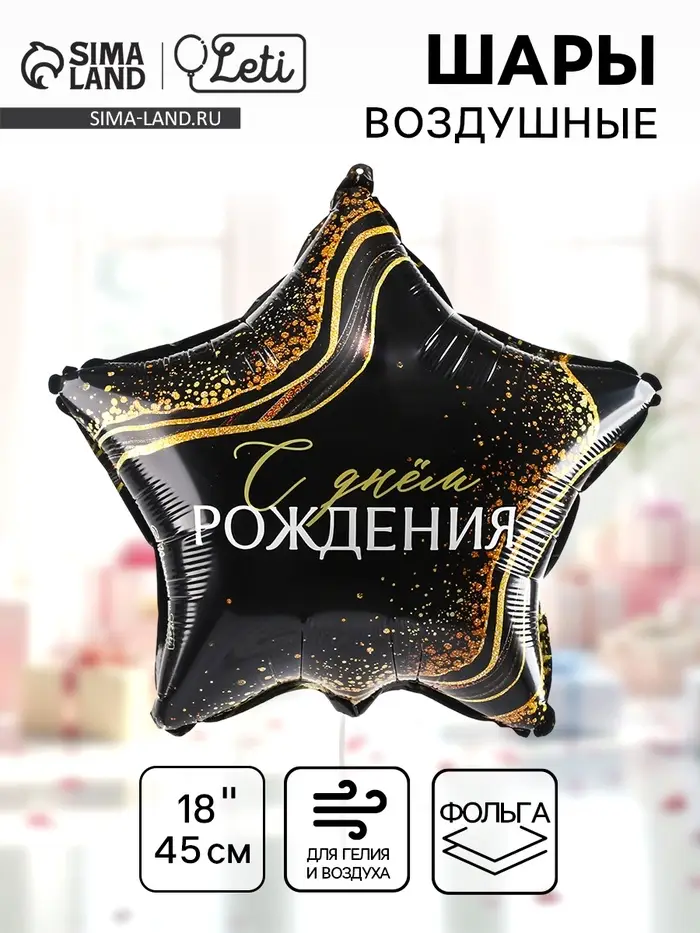Воздушный шар фольгированный 18" «С днём рождения», звезда