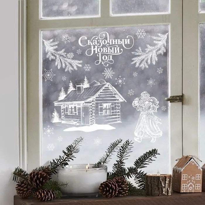 Наклейки на окна многоразовые «Сказочный Новый год», 33×50 см