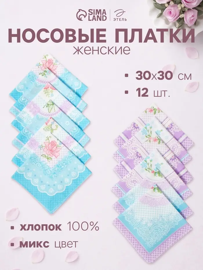 Носовые платки женские «Этель. Нежность» 30×30 см набор 12 шт. помогают женщинам сохранять спокойствие в моменты, когда насморк или аллергия нарушают планы. Рисунок «МИКС» добавляет лёгкости в сумочку или карман, делая их частью ежедневного образа. Хлопковый состав впитывает влагу мягко, поддерживая свежесть в любое время года — от весны до зимы.