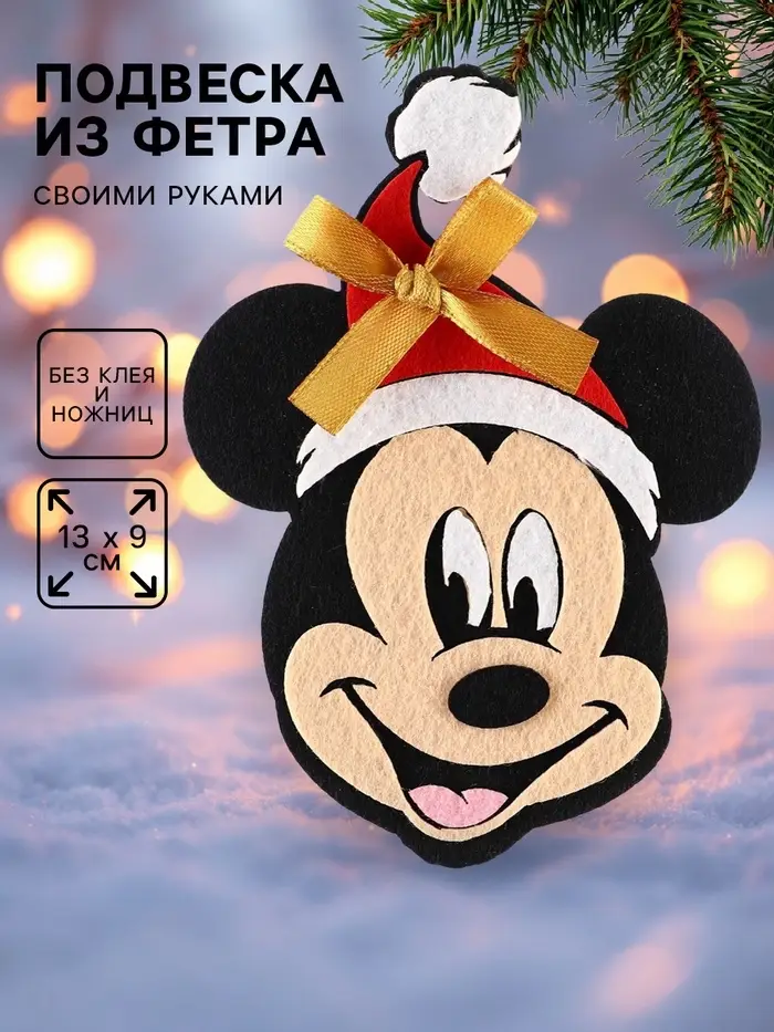Ёлочная игрушка из фетра своими руками на новый год «Микки Маус», набор для творчества