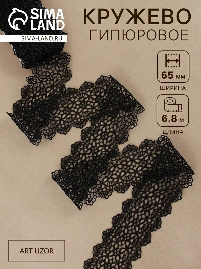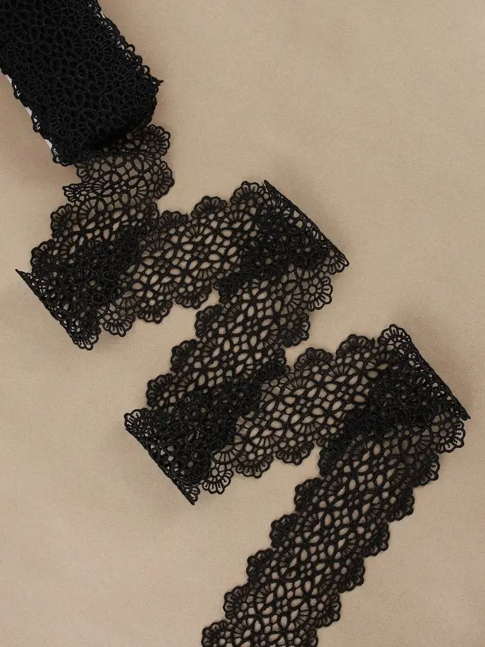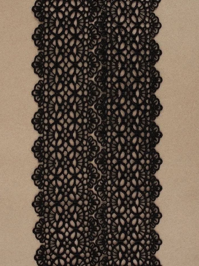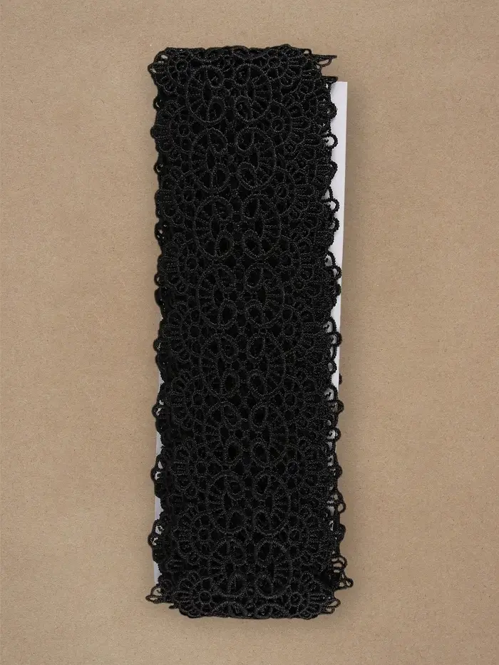 Кружево гипюровое, 65 мм, 6.8±0.5 м, цвет чёрный