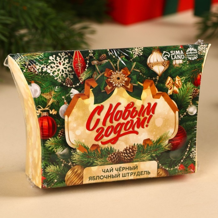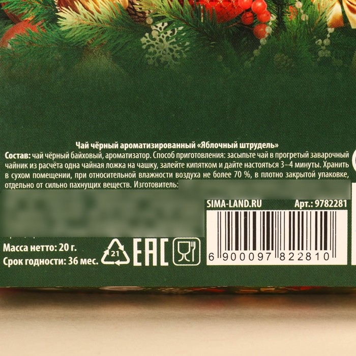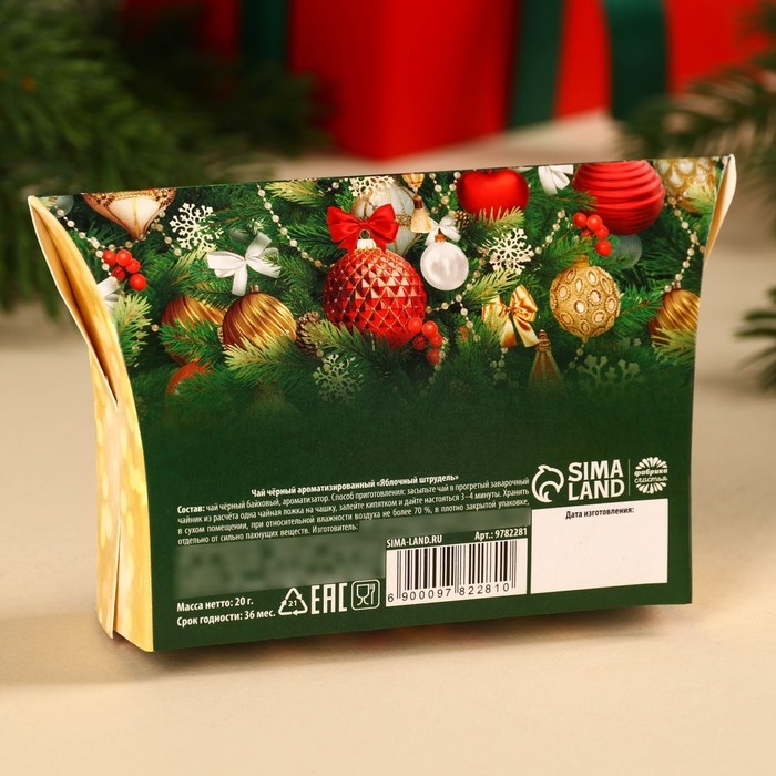 Новый год! Чай чёрный в коробке «Ёлка», вкус: яблочный штрудель, 20 г.