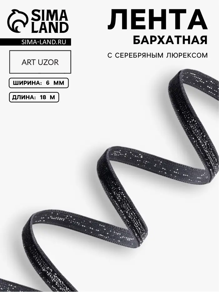 Лента бархатная, с серебряным люрексом, 6 мм, 18±1 м, чёрная №03