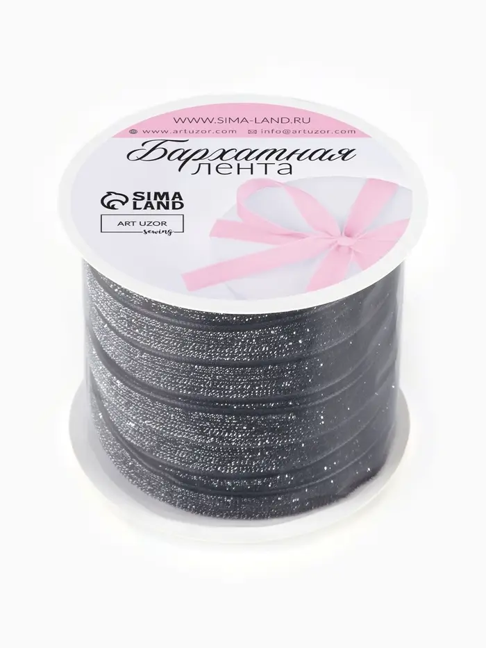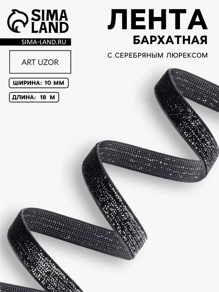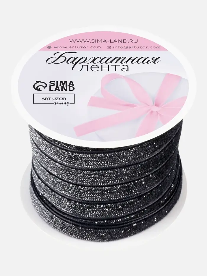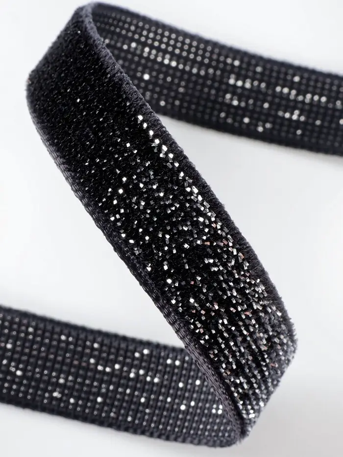 Черная бархатная лента с серебряным люрексом создает выразительный акцент для декора и творчества. Сочетание глубокого матового бархата и мерцающей нити придает проектам сдержанную элегантность.