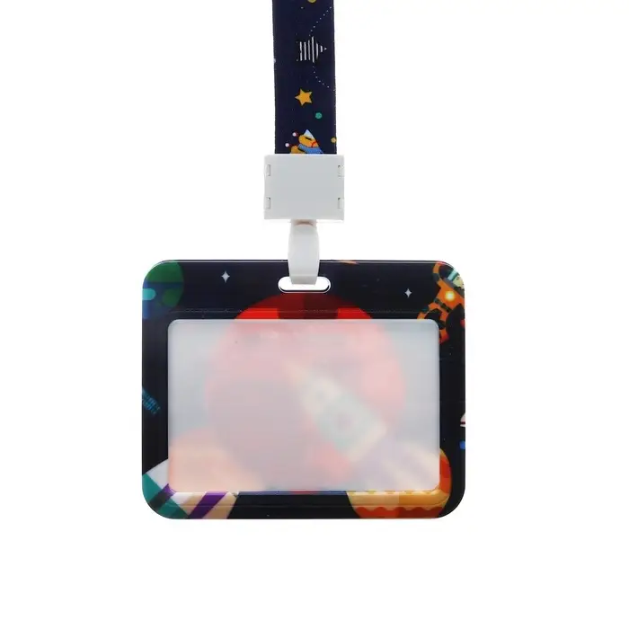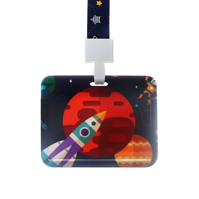 Бейдж горизонтальный Calligrata, «Космос», внешний размер 100×78 мм, внутренний размер 52×82 мм, на ленте-42 см, пластик