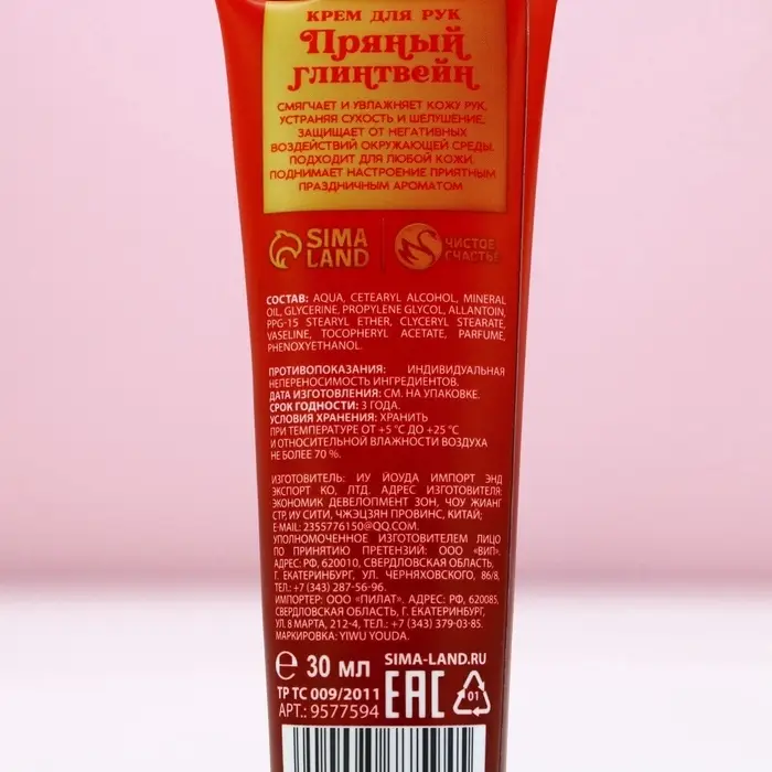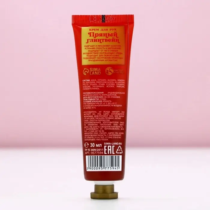Крем для рук новогодний, 30 мл, аромат пряного глинтвейна, Чистое счастье