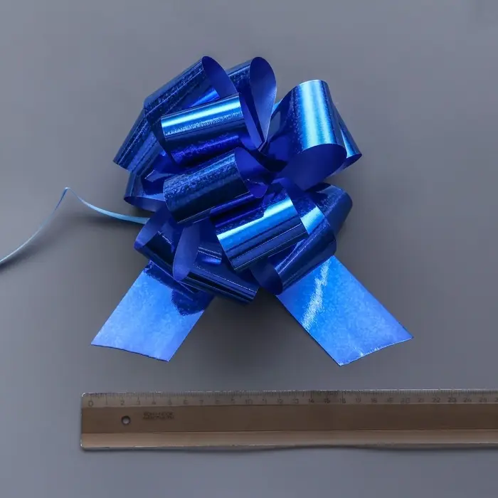 Выбор для требовательного вкуса: Этот бант выбирают те, кто ценит в упаковке сдержанность, элегантность и универсальность. Он отлично смотрится на однотонной упаковке, особенно белой, серой, серебристой или золотой, создавая гармоничный и стильный дуэт. Выбирайте синий бант-шар, чтобы подарок выглядел солидно и современно.