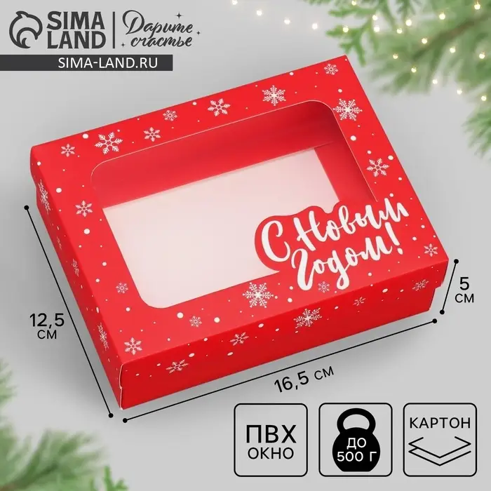 Коробка подарочная новогодняя складная «С Новым годом», красная, 16.5×12.5×5 см