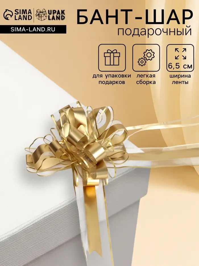 Подарочный бант - шар №6.5, золото, для упаковки подарков