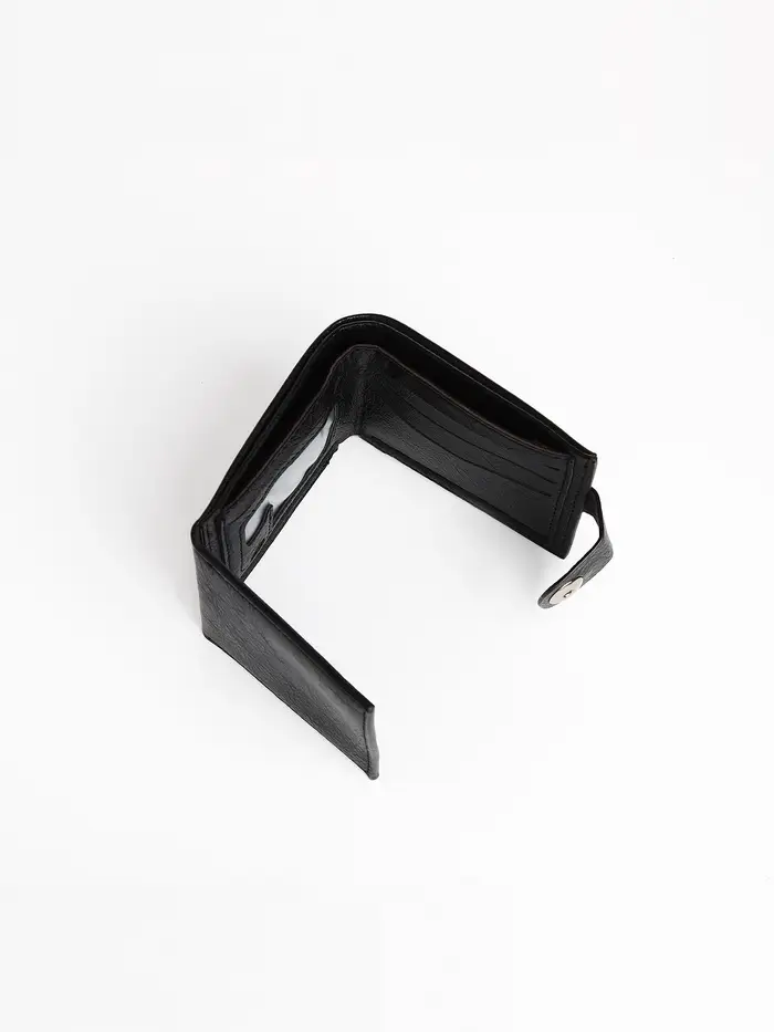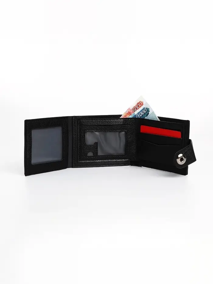 Это чёрное портмоне создаёт ощущение полного порядка в платежных средствах. Оно подходит мужчинам, которые ценят чёткую организацию и быстрый доступ к деньгам и картам в повседневных ситуациях.