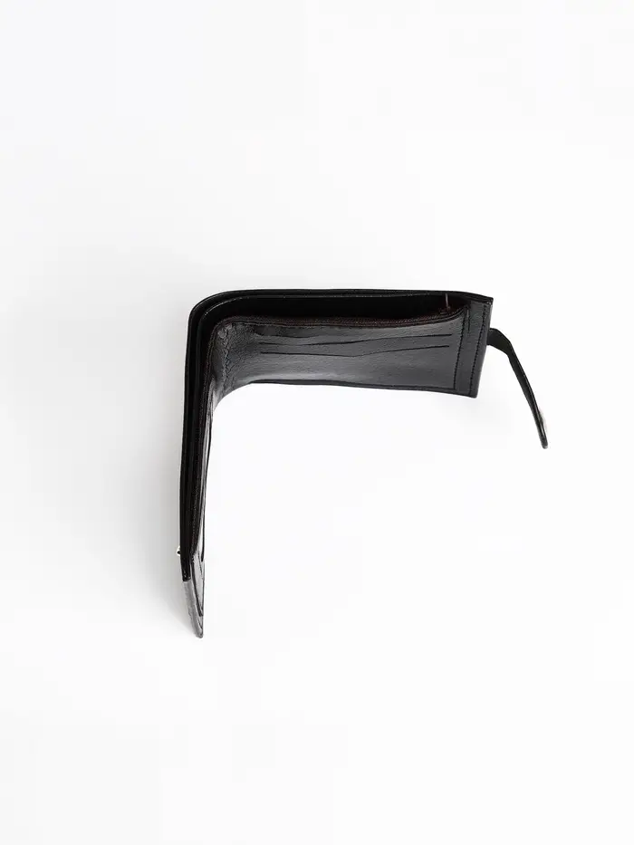Это чёрное портмоне создаёт ощущение полного порядка в повседневных финансовых делах. Оно подходит мужчинам, которые ценят минималистичный подход к хранению платежных средств.