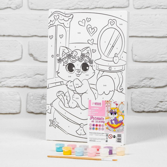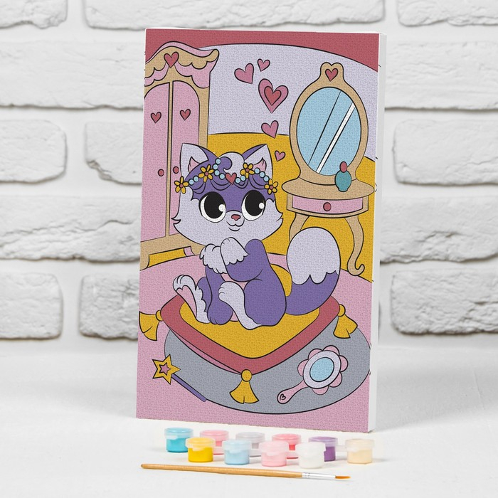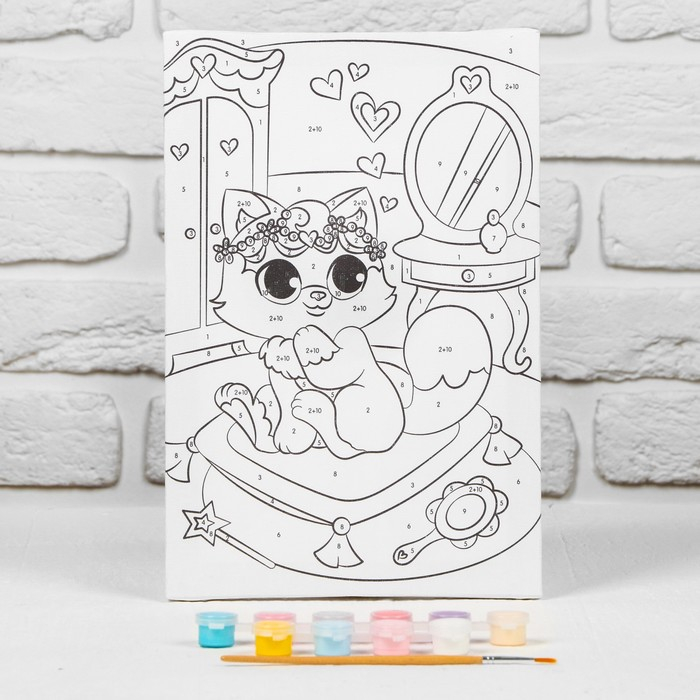 Картина по номерам для детей на подрамнике «Котёнок на пуфике», 20 х 30 см