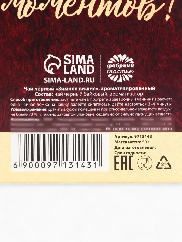 Состав: чай чёрный "Зимняя вишня".