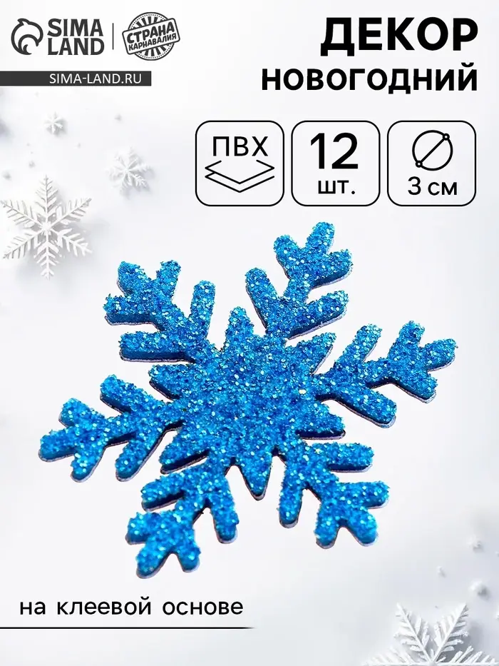 Новогодний декор «Снежинки», на клеевой основе, набор 12 шт.