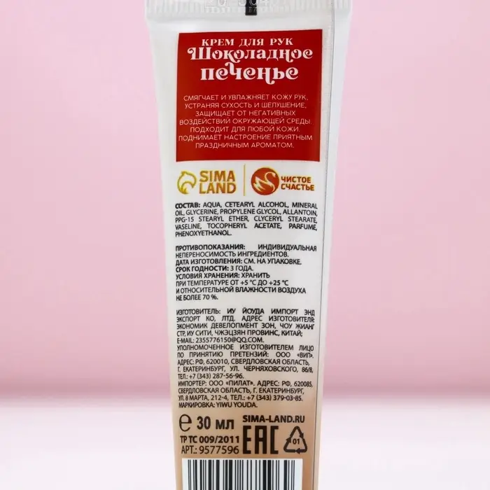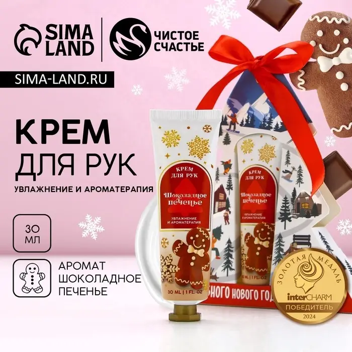 Крем для рук новогодний, 30 мл, аромат шоколадного печенья, Чистое счастье